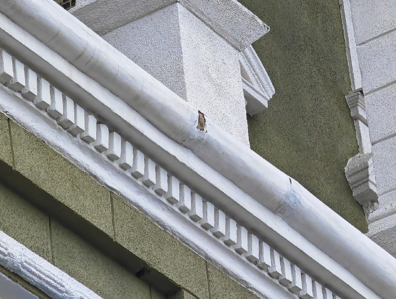 ❗️Подібним чином окупанти "відновлюють" й інші історичні будівлі міста. Не дотримуючись жодних реставраційних норм, роботи виконують поспіхом — заради "звітності". У результаті таке "відновлення" не витримує часу, і будівлі знову занепадають.