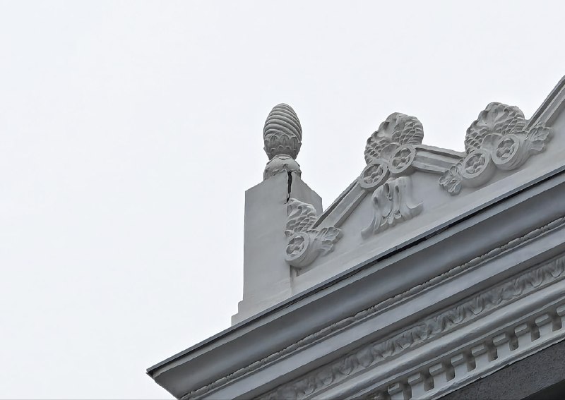 🤨У 2024 році російська окупаційна адміністрація нібито "відновила" історичні будівлі, які російська армія обстріляла під час блокади міста. Підрядники виконали роботи нашвидкуруч: ліпнину демонтували, а фасади покрили дешевою фарбою.