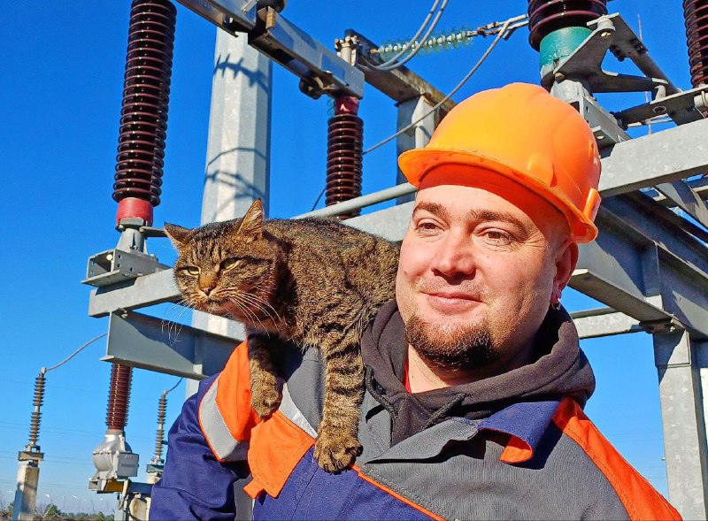 Упродовж кількох днів Олександр працював на іншому об’єкті, допомагаючи підняти його з руїн після чергового російського обстрілу. Втім, думками постійно повертався на рідну підстанцію, де на нього з нетерпінням чекає друг – кіт Тигра. Він – справжня «дитина війни»: його знайшли зовсім маленьким у захисних габіонах. А крім того, Тигра – син кішки Ази, яка прожила на підстанції 10 років, включно із періодом окупації у 2022-му. «Аза встигла передати Тигрі свою мудрість: він дуже чемний, до обладнання не лізе, нічого не псує. Зате став справжньою грозою для мишей – цієї осені встановив рекорд з полювання. А ще Тигра – дуже соціальний. Йому сумно самому, тож він завжди чекає на людей, лягає на стіл і ніби щось «розповідає». Я називаю його нашим маленьким «ППО». Звісно, це жарт, але він дійсно працює як живий оберіг для хлопців», – з теплом розповідає Олександр.
