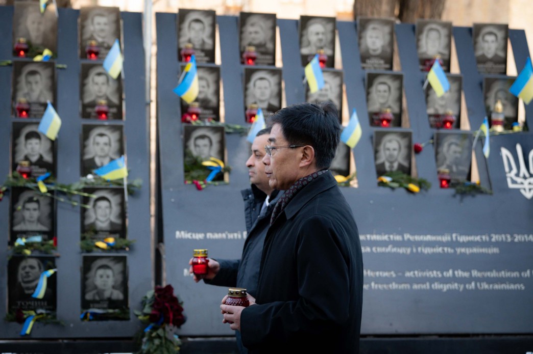Президент і перша леді також віддали шану загиблим Героям Небесної Сотні біля їхніх портретів.