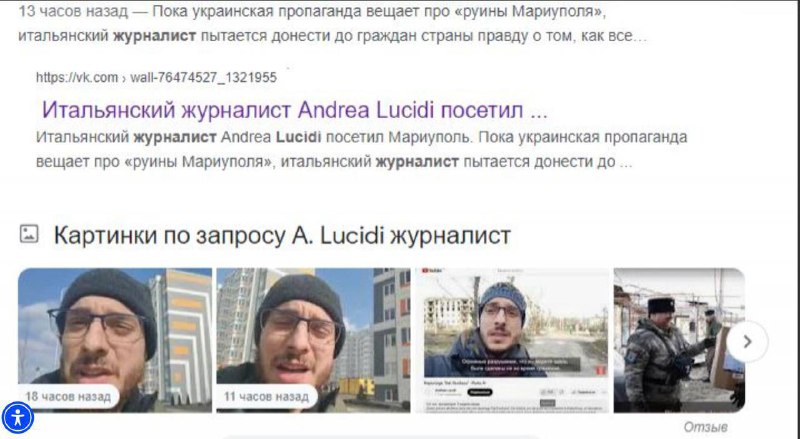 😡Його пов’язують із поширенням дезінформаційних матеріалів щодо ситуації в місті Маріуполь та подій, що відбувалися під час його тимчасової окупації. Разом із Андреа Лучіді затримано громадянку російської федерації Тетяну Десятову.