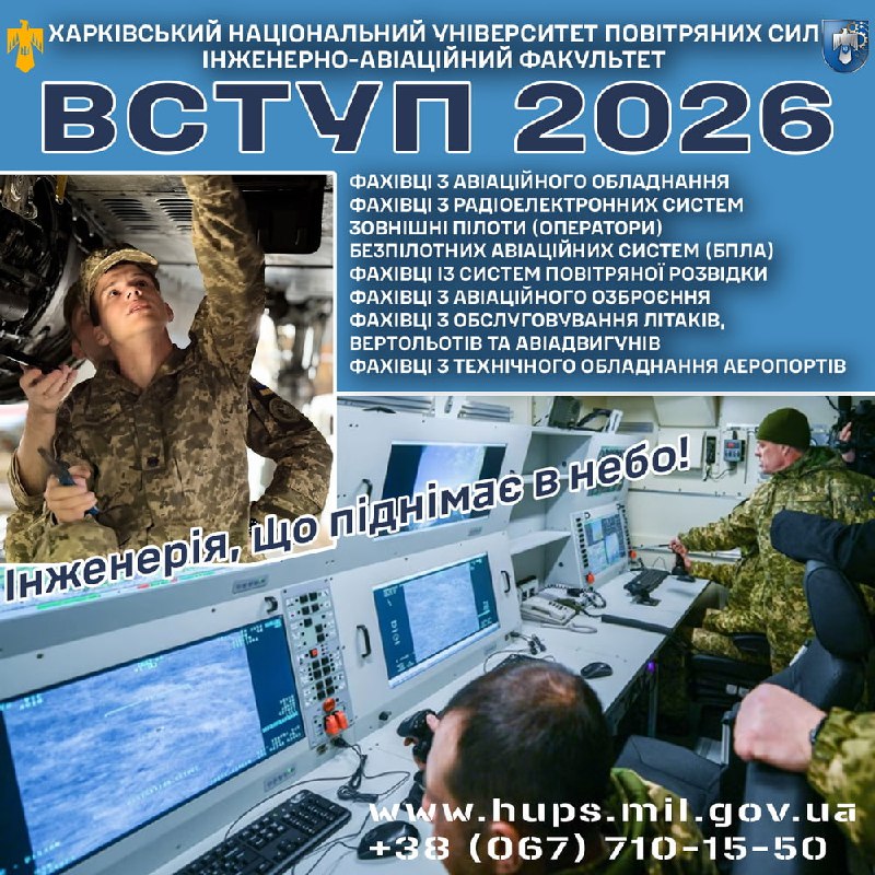 Харківський національний університет Повітряних Сил імені Івана Кожедуба розпочинає набір курсантів на навчання у 2026 році. Це провідний військовий заклад України, де готують фахівців для Міністерства оборони, СБУ, Нацгвардії, ДПСУ та ДСНС.