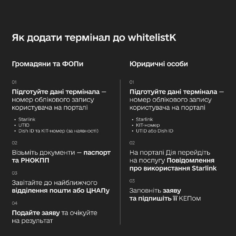 Як додати Starlink до whitelist чи скільки потрібно чекати після реєстрації, щоб запрацював термінал? Зібрали відповіді на запитання, які цікавили вас найбільше 👉🏻 гортайте карусель.