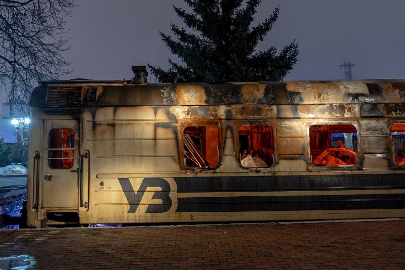 Це реальний вагон рейсу Чоп—Барвінкове, який росія атакувала 27 січня 2026 року. Того дня 6 пасажирів загинули, ще двоє були поранені. Близько 300 людей вдалося врятувати, бо залізничники діяли за лічені хвилини: допомогли вибратися, надали першу допомогу, від’єднали неушкоджені вагони, щоб вогонь не поширився.