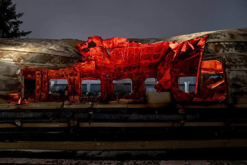 Цей вагон був знищений ударом ворожого дрону. Усередині перебували мирні люди. Єдине, що залишилося після — обвуглений метал, тиша і біль, який неможливо ані виправдати, ані забути.