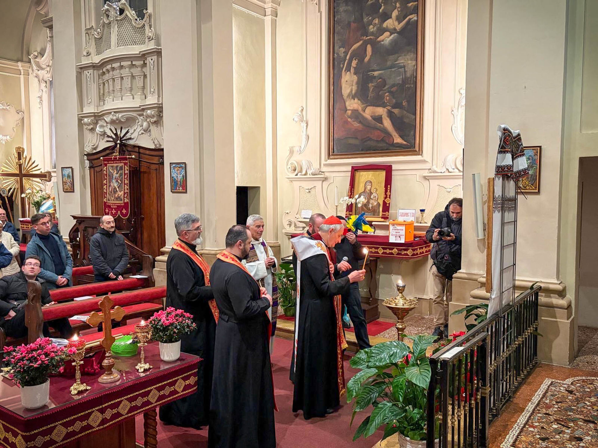 Напередодні четвертої річниці повномасштабного вторгнення російських військ в Україну, 23 лютого, на запрошення о. Михайла Бойка, адміністратора парафії Святого Михаїла в м. Болонья та протопресвітера Флорентійсько-Болонського деканату, архиєпископ і митрополит Болонський кардинал Маттео Дзуппі, голова Єпископської конференції Італії, відслужив Молебень до Пресвятої Богородиці за мир в Україні.