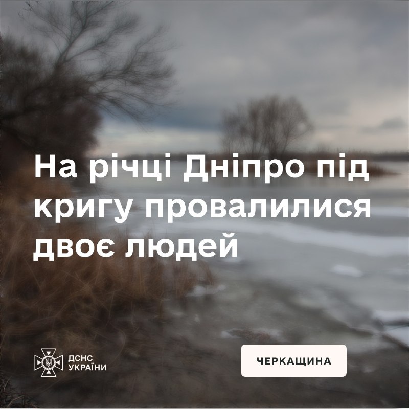 ‼️Поблизу Черкас на річці Дніпро під час руху на квадроциклі двоє людей провалилися під кригу