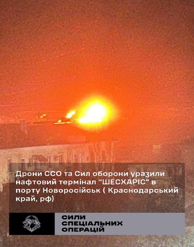 Сили спеціальних операцій у спільній операцій зі Службою безпеки, Силами безпілотних систем, Головним управлінням розвідки та іншими складовими Сил оборони України ударними дронами уразили нафтовий термінал “ШЕСХАРІС” в порту Новоросійськ Краснодарського Краю росії у ніч на 2 березня.