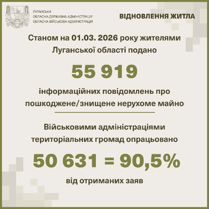 Наразі жителями області подано 55 919 інформаційних повідомлень про пошкоджене/знищене нерухоме майно.