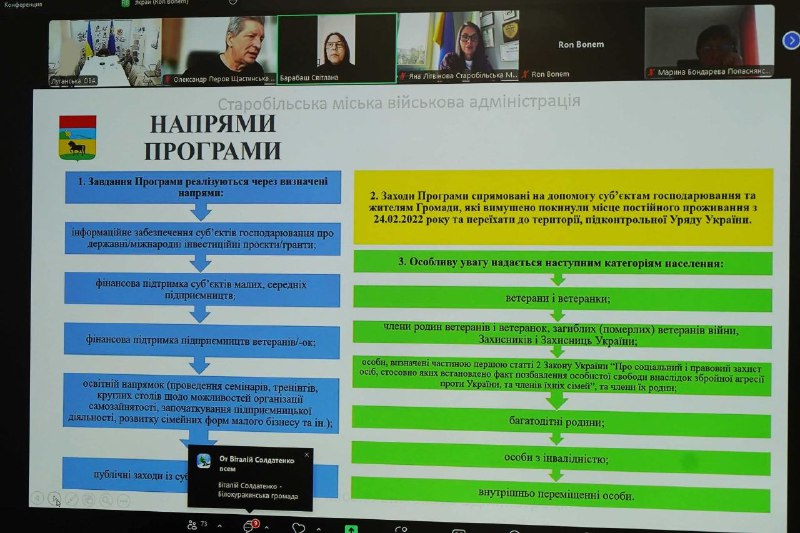 Начальник Старобільської міської військової адміністрації Яна Літвінова зазначила, що Програма підтримки релокованого бізнесу громади була розроблена з урахуванням статистичних показників підприємницького потенціалу мешканців.