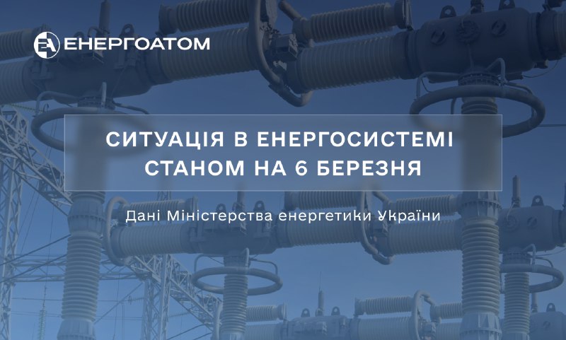ℹ️Про ситуацію в українській енергосистемі станом на 6️⃣ березня читайте тут 6.03.2026, П’ятниця | 14:45 Автор допису: Енергоатом ℹ️Про ситуацію в українській енергосистемі станом на 6️⃣ березня читайте тут #міністерство_енергетики EA |FB😎|YT📹|Х👥|IN🔗|IG🕊|TH🧵 Джерело Друк / PDF