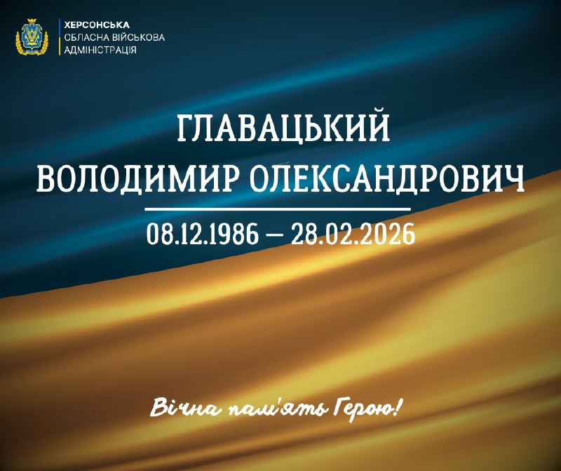 🕯9:00 – хвилина мовчання за усіма полеглими в російсько-українській війні. 8.03.2026, Неділя | 10:14 Автор допису: Херсонська обласна військова адміністрація 🕯9:00 – хвилина мовчання за усіма полеглими в російсько-українській війні. Херсонщина віддала останню шану мужнім Героям, які повернулися з фронту на щиті. Молодший сержант Володимир Главацький прийняв останній бій біля Новомиколаївки, що на Харківщині. Оборонцю навіки 39 років… Старший солдат Євген Німіч загинув під час виконання бойового завдання. Воїну назавжди 38 років… Щирі співчуття рідним та близьким! Вічна памʼять Захисникам України! Памʼятаємо кожного та кожну, хто віддав життя за Батьківщину! Джерело Друк / PDF