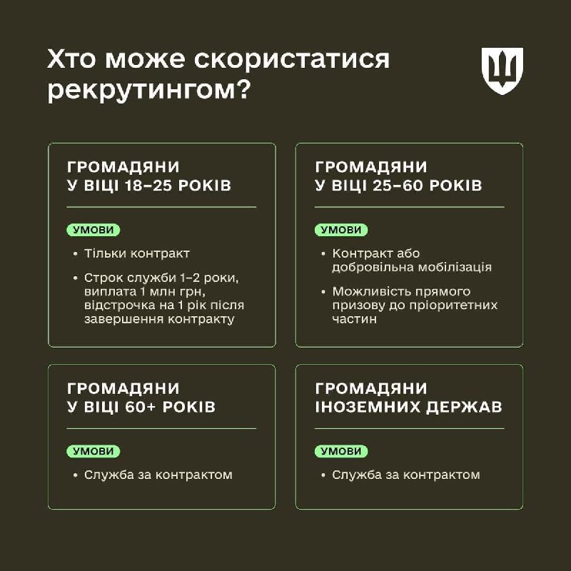 Поряд із класичною мобілізацією (коли підрозділ визначає командування) сьогодні успішно діє рекрутинг – механізм прозорого вступу на службу за контрактом або через мобілізацію, де пріоритетом є фах та побажання кандидата.