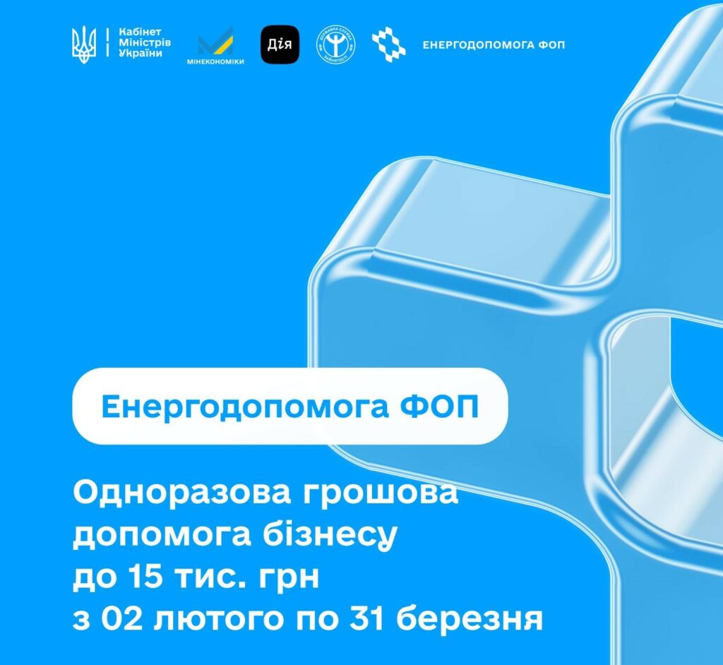 Програма працює за принципом грантів «Власна справа». Подати заявку можна онлайн через портал Дія – у категорії «Підприємництво», на сторінці послуги «Допомога ФОП на енергостійкість».
