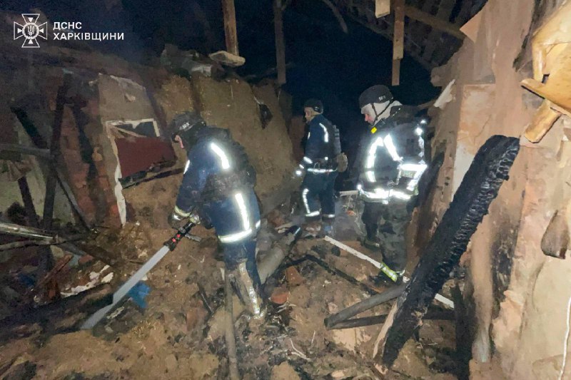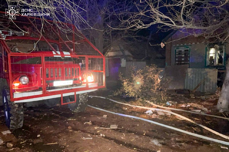 Сьогодні ввечері в результаті атаки БпЛА на приватний сектор міста Чугуєва зруйновано житловий будинок та виникла пожежа на площі близько 50 кв. м.