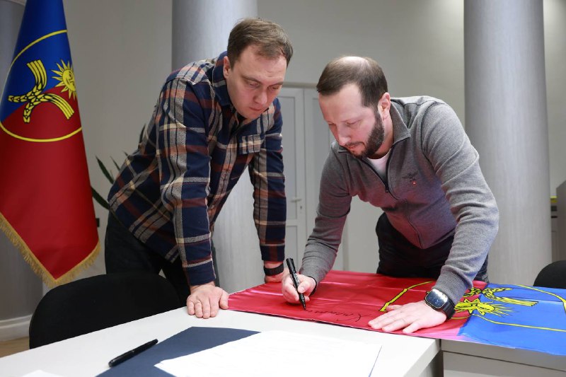 На знак поваги та підтримки підписав прапор Хмельниччини, який буде переданий учасникам експедиції.