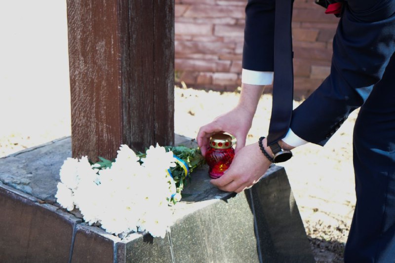 Вшанувати пам’ять  жертв Куренівської трагедії зібрались біля пам’ятного хреста у підніжжя Кирилівської церкви співробітники УІНП на чолі з Головою Інституту Олександром Алфьоровим.