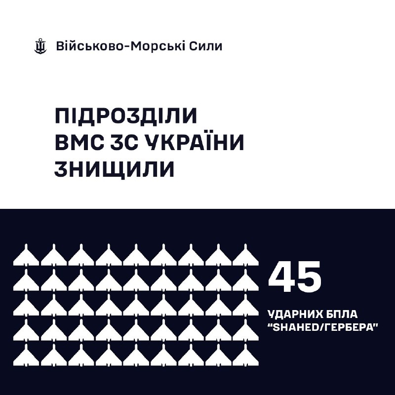 🇺🇦⚓ВМС ЗС України знищили 45 «Шахедів/Гербер»