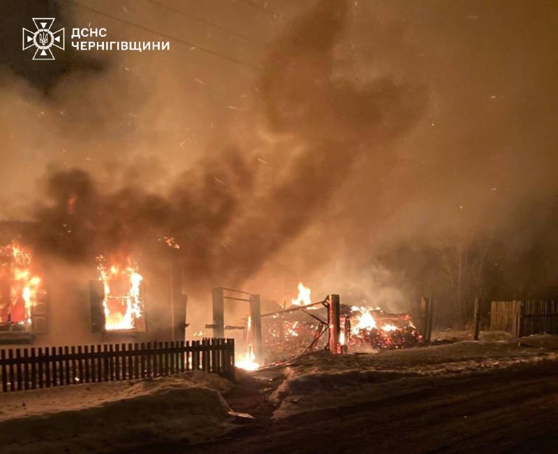 Цієї ночі ворожий безпілотник ударив по селу Семенівської громади. Загорілися житлові будинки. Пожежі загасили вогнеборці. Двом постраждалим жінкам медики надали допомогу на місці.