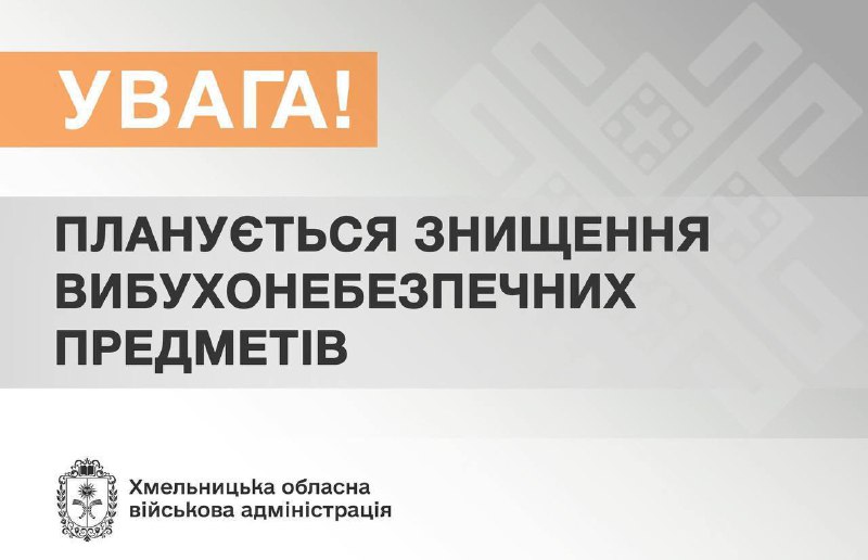 Сьогодні на території Старокостянтинівської громади з 12:00 до 15:00 відбудеться знищення вибухонебезпечних предметів 16.03.2026, Понеділок | 8:54 Автор допису: Голова Хмельницької обласної військової адміністрації Сьогодні на території Старокостянтинівської громади з 12:00 до 15:00 відбудеться знищення вибухонебезпечних предметів. Може бути гучно. Джерело Друк / PDF