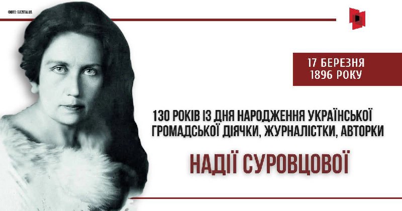 130 років тому, 17 березня 1896 року, народилася Надія Суровцова, журналістка, перекладачка