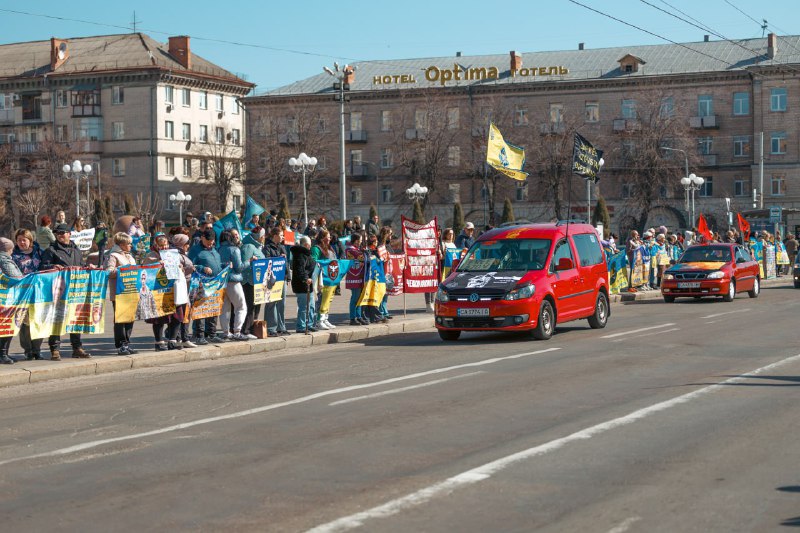У Черкасах маріупольці та містяни зібралися на Соборній площі. Під час акції відбувся автопробіг, а присутні мали у руках плакати та прапори бригад.