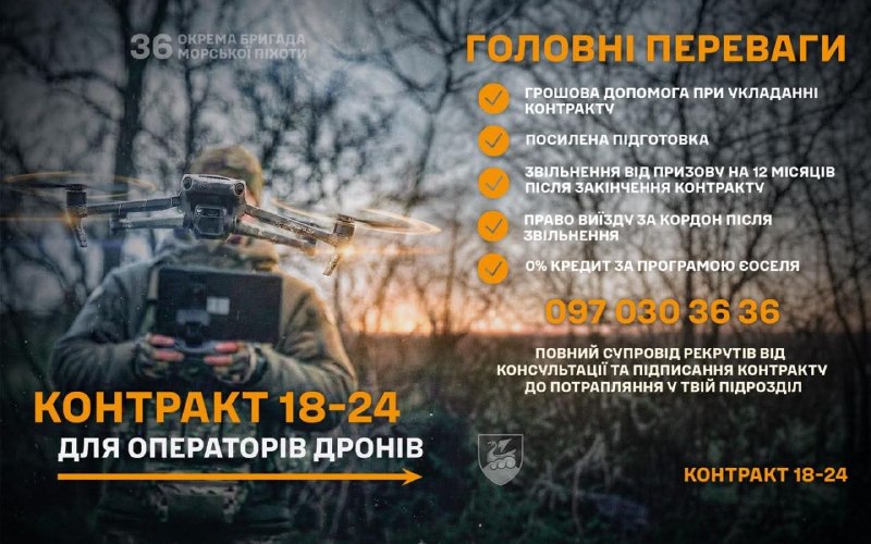 🇺🇦⚓️ Стань оператором дронів та роботизованих комплексів легендарної 36-ї окремої бригади морської піхоти імені контрадмірала Михайла Білинського – підпиши добровільний «Контракт 18-24».