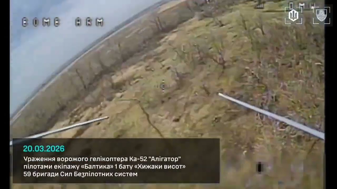 На Донеччині оператори батальйону “Хижаки висот” 59-ї окремої штурмової бригади безпілотних систем СБС знищили розвідувально-ударний вертоліт Ка-52 “Алігатор” за допомогою FPV-дрона.