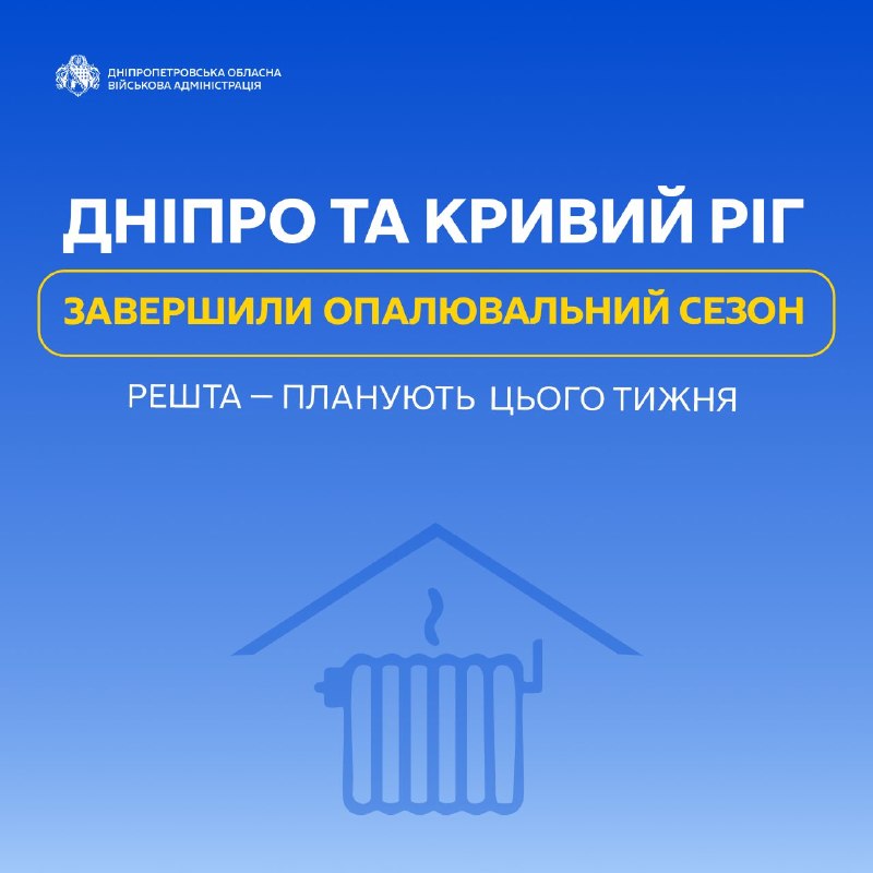 ❎Дніпро та Кривий Ріг завершили опалювальний сезон. Працюють лише котелені, які живлять школи, садочки та лікарні.