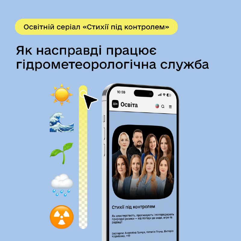 Український гідрометеорологічний центр спільно з Дія.Освіта створили освітній серіал «Стихії під контролем», який показує, як насправді працює гідрометеорологічна служба.