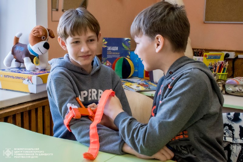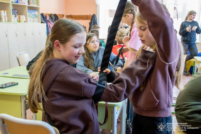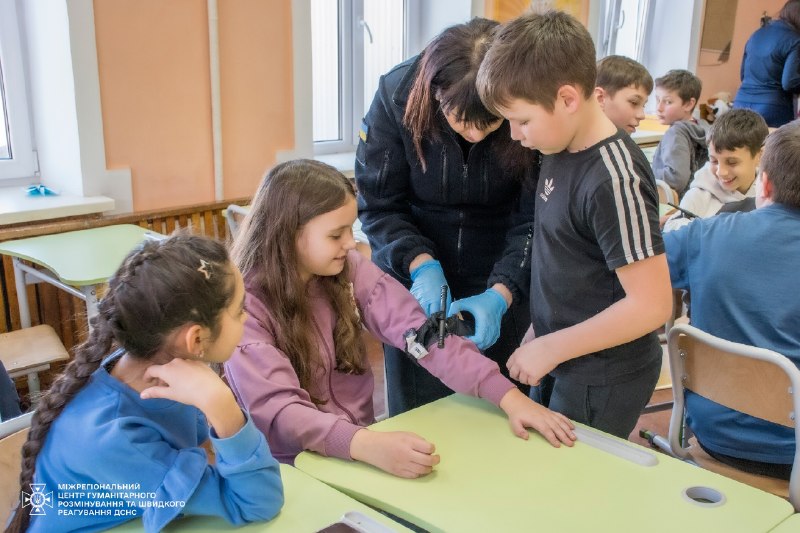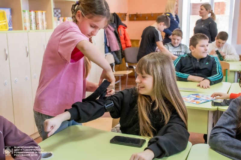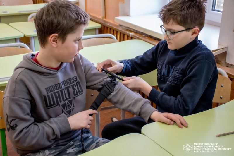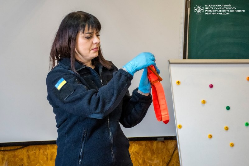Тож навіть під час занять з дітьми інструктори ДСНС детально пояснюють і показують, як правильно накладати турнікет – не лише в теорії, а й практично відпрацьовують алгоритм його використання, щоб кожен міг в потрібний момент впевнено та без паніки надати допомогу.