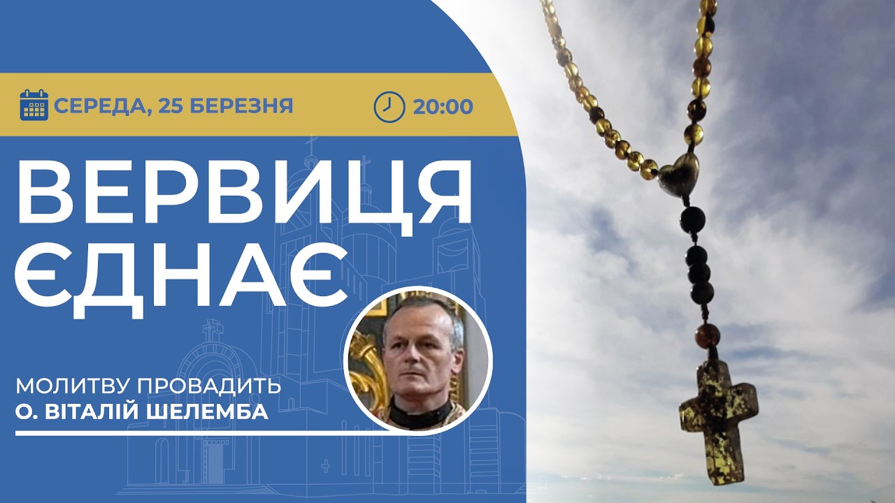 25 березня молитву на вервиці в рамках ініціативи «Вервиця єднає» буде провадити о. Віталій Шелемба з Білок на Закарпатті. Початок молитви о 20-00 за київським часом.