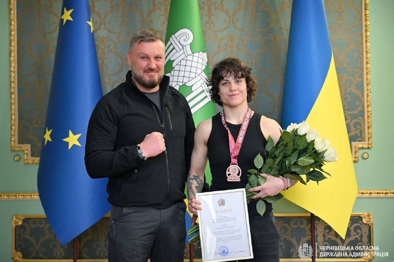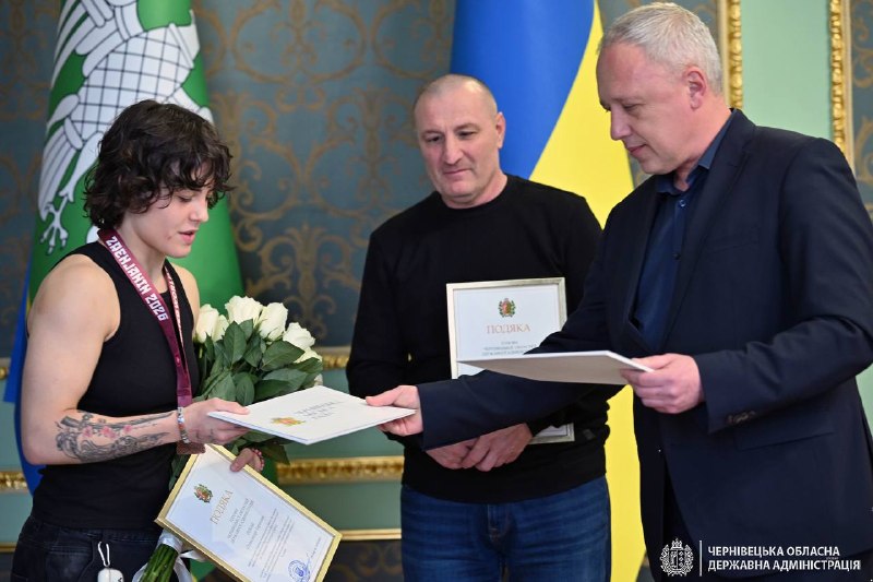 Разом із міським головою Чернівців Романом Клічуком привітали спортсменку, її тренера Сергія Одинака та голову Чернівецької обласної федерації вільної боротьби Сергія Галушка з черговим здобутком.