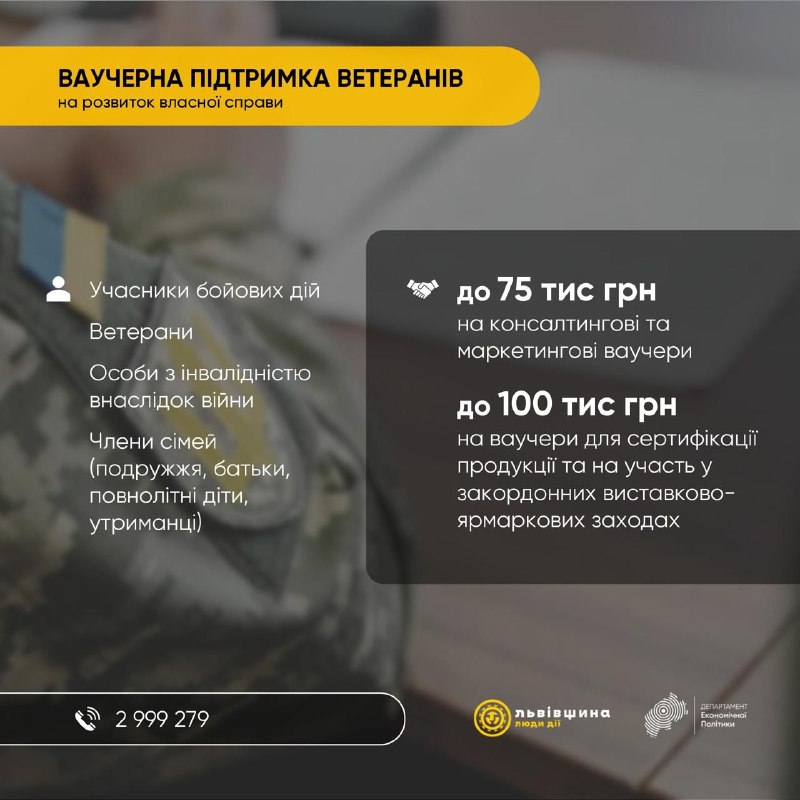 На Львівщині розширили програму ваучерної підтримки для бізнесу ветеранів та членів їхніх сімей.