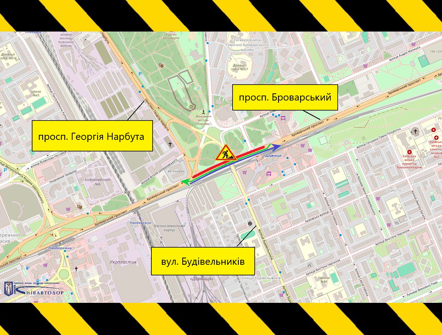 Від 31 березня до 15 травня частково обмежуватимуть рух транспорту Броварським проспектом (+схема)