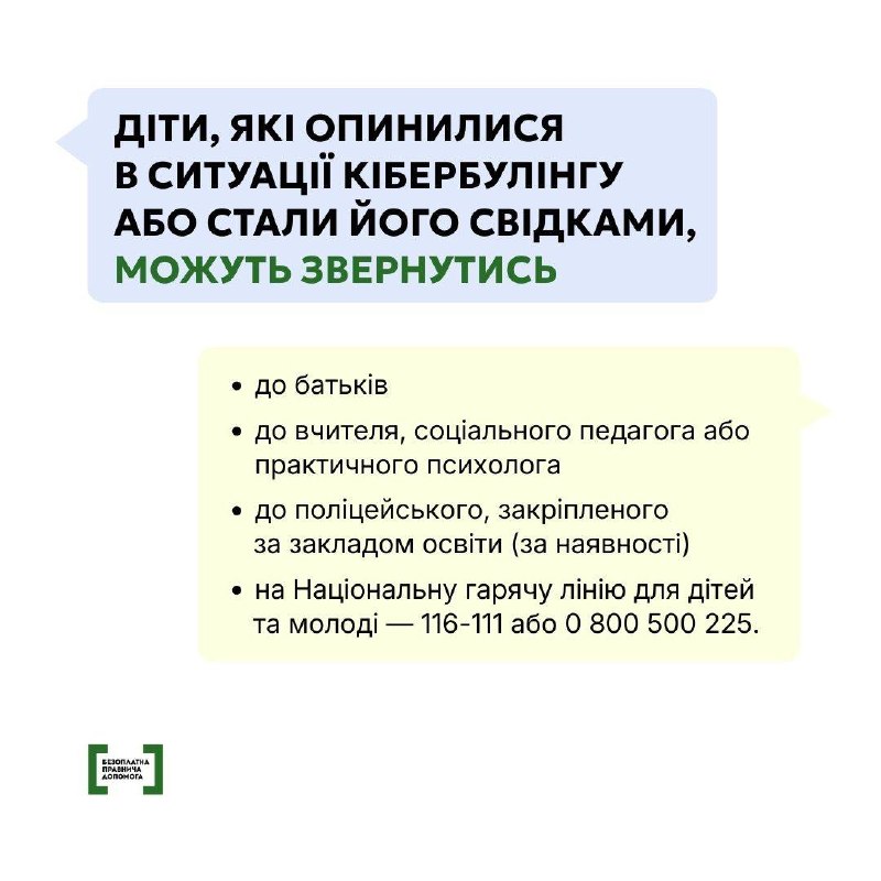 Кібербулінг – це булінг із застосуванням цифрових технологій. Важливо вчасно помітити ознаки кібербулінгу та знати, як правильно діяти, щоб підтримати дитину і зупинити онлайн-цькування. Як його розпізнати, що робити та куди звертатись, щоб убезпечити дитину – у картках.