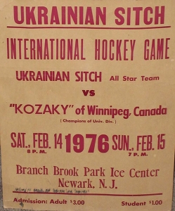 Отже, 1976 року, 14 та 15 лютого в Нюарку на арені Бренч Брук Парку, відбулись історичні хокейні зустрічі хокейних дружин “Козаки” з Вінніпега (Канада) та “Чорноморська Січ” (Нюарк, США).
