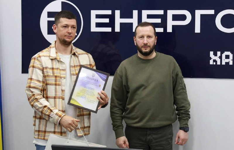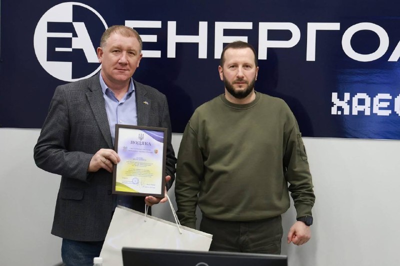 Вручив відзнаки обласної військової адміністрації трудовому колективу ХАЕС, голові робочої групи з координації волонтерської діяльності філії ХАЕС та колективу ГО «Енергія наших сердець» за активну допомогу ЗСУ і вагомий внесок у зміцнення обороноздатності держави.