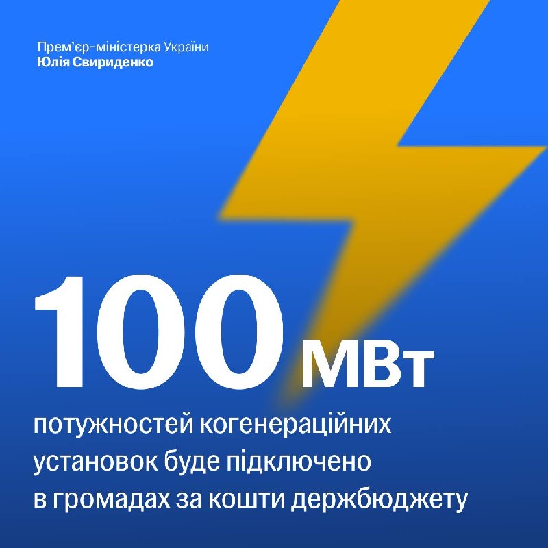 Юлія Свириденко | Премʼєр-міністр України – Telegram Громади підключать до мережі 75 вже наявних когенераційних установок загальною електричною потужністю майже 100 МВт та тепловою — 107 МВт. Уряд виділив на це 732,5 млн грн у межах реалізації Планів стійкості регіонів. За рахунок цих коштів будуть приєднані…