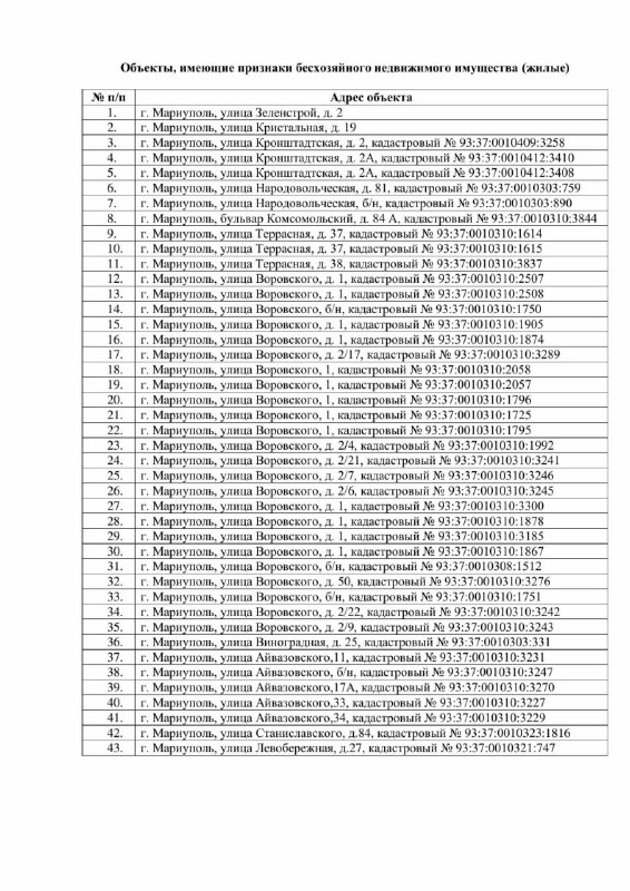 ☝️Окупаційна адміністрація розмістила новий список так званих "житлових приміщень з ознаками безгосподарних". У ньому налічується понад 100 адрес маріупольців: квартири, будинки, житлові приміщення.