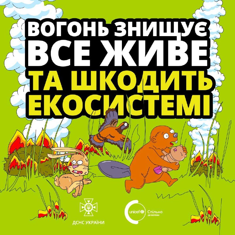 ⏺Вогонь знищує все живе. Гине флора, дикі та свійські тварини, комахи й птахи, які низько гніздяться.