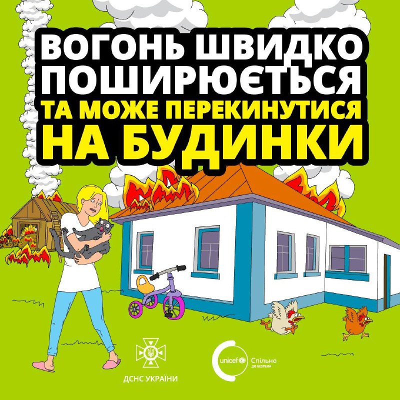 ⏺За певних погодних умов маленький підпал може швидко перетворитися на масштабну пожежу, перекинутися на будинки й стати причиною загибелі худоби та навіть людей.