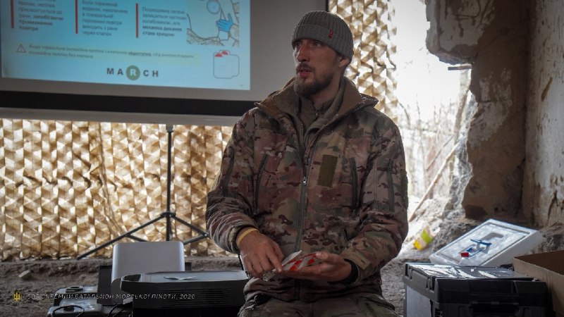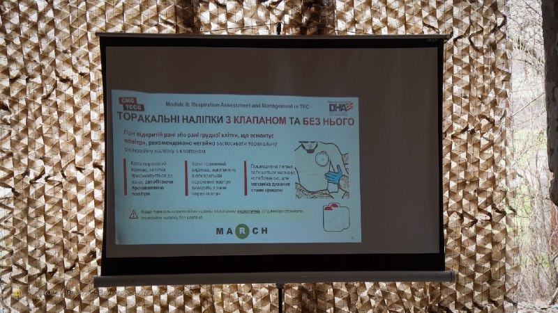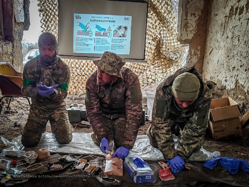 Цього разу — такмед. Як врятувати себе чи побратима при пораненні, як діяти при поранені у легені, як тампонувати рану тощо. У будь-який момент може пролунати команда, наприклад, "поранення: ліва рука", після якої бійці мають миттєво накласти турнікет.