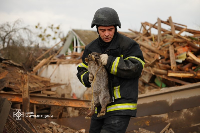 Поруч, розбираючи завали, під уламками рятувальники знайшли кролика — наляканого, але живого. Витягнули. Врятували.