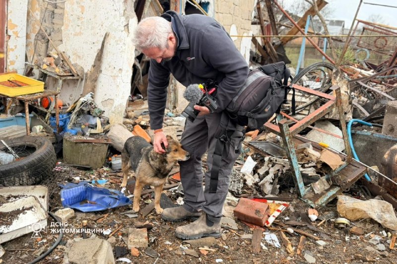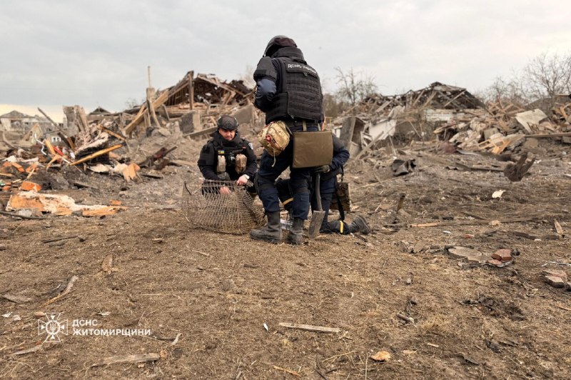 Руїни… Знищений житловий квартал на Житомирщині… Посеред зруйнованих будинків стоїть пес. І плаче. Так, що серце розривається на частини. За одну мить він втратив усе: дім, тепло, господарів. Це відео неможливо дивитися без сліз…
