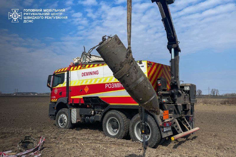 💥В полі на Київщині сапери ДСНС знешкодили бойову частину російської аеробалістичної гіперзвукової ракети Х-47М2 «Кинджал»