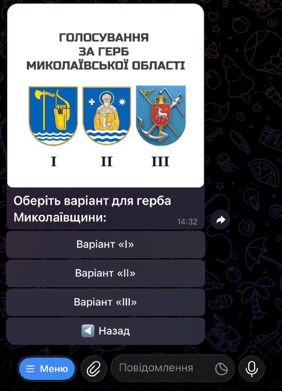Голосування за герб Миколаївської області через «Хвильку»: 1. Переходьте за посиланням на канал @hvylka_bot 2