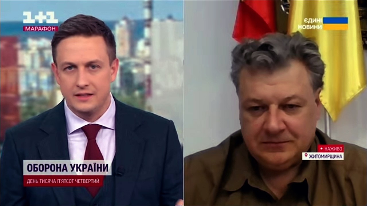 В ефірі «Єдиного марафону» поспілкувався з журналістами «1+1» про те, як Коростень оговтується після ворожих повітряних атак.