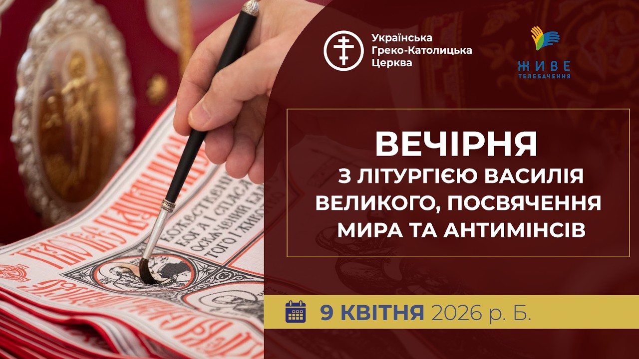 Великий Четвер. Онлайн-трансляція Вечірньої з Літургією Василія Великого, посвячення мира і антимінсів, 9 квітня, о 9-00.