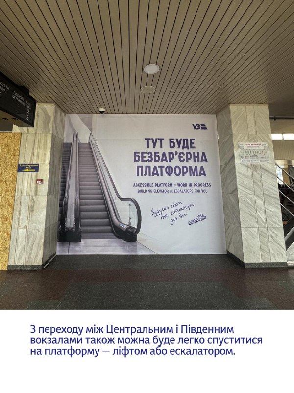 Тут піднімуть платформу та встановлять ліфт і ескалатори. Після завершення робіт буде зручний доступ до 2-ї та 3-ї колій, а головне — можливість заходити у вагони без сходів.